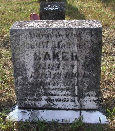 Baker, Nancy L born Apr 16, 1903; died Apr 30, 1903; Dau of John W & Fannie C