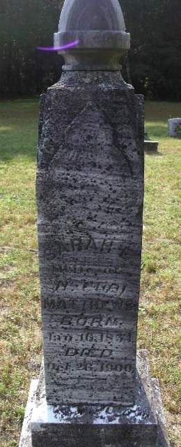 Matthews, Sarah E born Jan 16, 1854; died Oct 26, 1900; Wife of H Clay