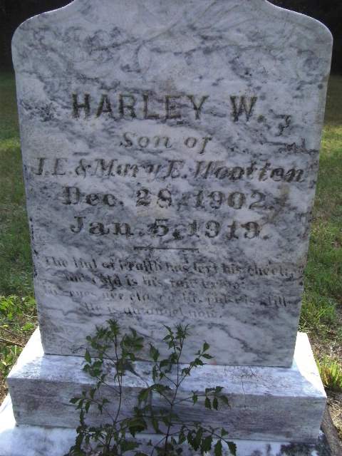 McCue M Linden born May 4, 1900; died Jul 8, 1915; son of Zora F J & Addie