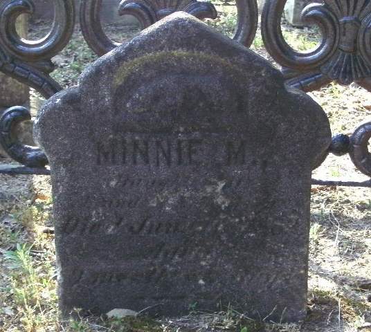 Gordy, Minnie M died Jun 10, 1882; Aged 9 mo 7 day; Dau of G C & S J