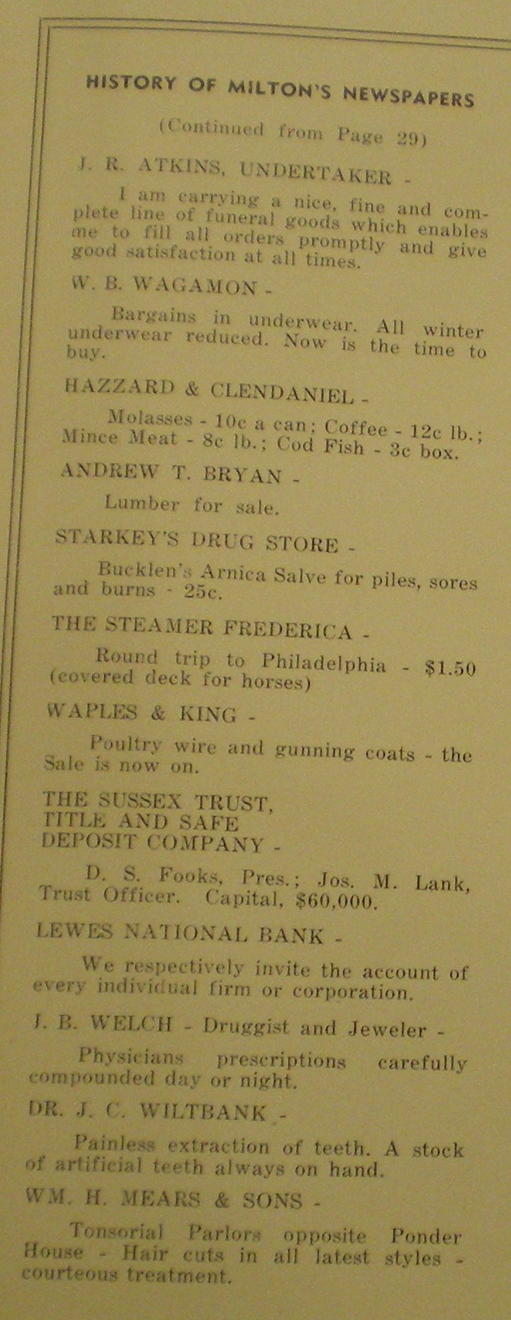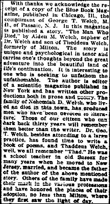 WELCH, well, we all remember "Thad." He was a school teacher in old Sussex for