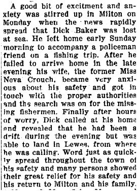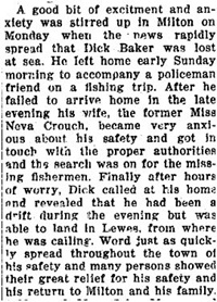 news rapidly spread that Dick Baker was lost at sea. He left home early Sunday