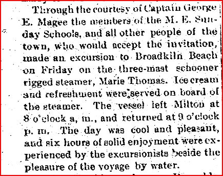 steamer, Marie Thomas. Ice cream and refreshment were served on board of the