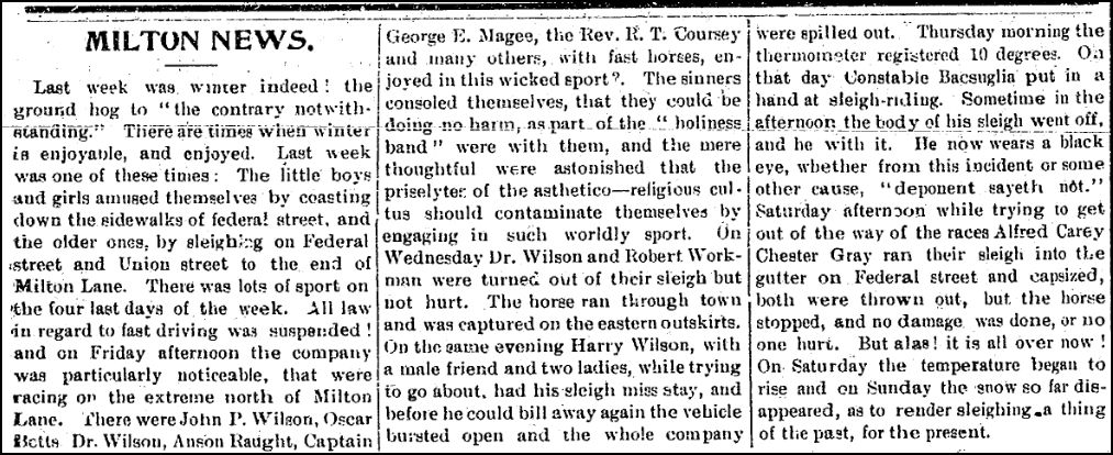 don't know what the horses think. --Milton, Jan. 18, 1893. D. A. C.