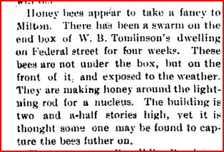 box of W. B. TOMLINSON's dwelling on Federal street for four weeks. These bees