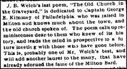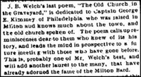J. B. WELCH's last poem, "The Old Church in the Graveyard," is dedicated to