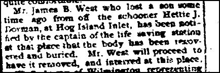 On Wednesday Mr. P. J. HART went to Hog Island Inlet to look after Mr. James B.